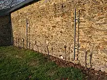 In similarity to many other large, wall-enclosed vineyards such as Clos de Vougeot, the entire vineyard is not homogeneous in quality. The slope varies between 15% and 35% inside the wall, which results in differences in sun exposure and drainage. Typically, different parcels (sub-areas) of Steinberg will be used for wines of different types. A parcel named Zehntstück, located in the middle slope, is the source for the best dry wines in most vintages.[2] A row of vines just inside the wall are trained in an espalier fashion directly against the stone wall, and these vines have a markedly different microclimate because of the heat reflected by the stones. The grapes from these vines are harvested separately and are made into small amounts of Mauerwein ("wall wine"), which typically only are found at the wine auctions.