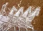 Since 1981 Stepan Veranian has made etchings, aquatints and linocuts. Veranian fully embraced linocuts, during the period spent working in the Graphics Department, National Center of Aesthetics of Armenia. The National Gallery of Armenia[2][3] and MAMY have bought his prints. The thirteen Blue Prints of 1985 were made with linocut and painting. Veranian created a key series of 21 large scale linocuts in 1989, influenced by Federico García Lorca's poems. Other prints include the Composition and Dreams (1989) series, consisting of 13 linocuts. This series of linocuts was displayed for the first time in September 1990 at MAMY, as part of a group exhibition. The Migration (tales of the Aegean Sea, sheet 02 and 03, the Pushkin State Museum of Fine Arts, Moscow), a series of 21 etchings, was created between 1989 and 1991. In May 1995, he created a number of etchings, inspired by his public and private life, for an exhibition called Moscow-Yerevan, Question of the Ark at MAMY.