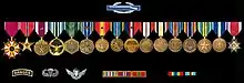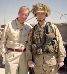 Russell is highly decorated,[5] having received the Legion of Merit, the Bronze Star Medal with Valor Device[6] and Oak Leaf Cluster, the Combat Infantryman's Badge and his unit in Iraq was awarded the Valorous Unit Award for its role in the hunt and capture of Saddam Hussein.[7]