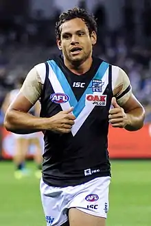 During the 2017 trade period, Motlop joined Port Adelaide as a restricted free agent, after Geelong elected not to match Port Adelaide's contract offer.[7] In Showdown 44, with 21 seconds left, Motlop kicked the match-winning goal which saw Port Adelaide win by 5 points against Adelaide, ending their rival's 5-game winning streak against the Power. In 2020, Round 7, Motlop injured his foot. Scans showed that he had sprained ligaments in his ankle, and he missed four weeks with the injury.