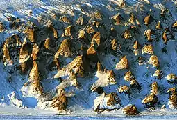 ![]() Part of the coast of Stolbovoy showing the cliff formations. |