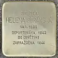 HERE LIVED HELENA STRÁNSKÁ BORN 1899 DEPORTED 1942 TO AUSCHWITZ MURDERED 1944 |