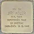 HERE LIVED JIŘÍ ADLER BORN 1938 DEPORTED 1942 TO AUSCHWITZ MURDERED 15.12.1943 |