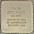 HERE LIVED OTTO ADLER BORN 1891 DEPORTED 1942 TO BUCHENWALD MURDERED 1944 |