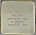 HERE LIVED OTTO HERRMANN BORN 1926 DEPORTED 1942 TO AUSCHWITZ MURDERED 1943 |