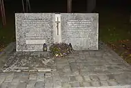 ![]() Josef Seidler and Matylda Seidlerová on a common monument in Boršice Josef Seidler was born on 10 August 1897. He married Matylda Seidlerová. The couple had at least one son, Valtr, born in 1926. On 23 January 1943, he, his wife and their son were deported from Uherské Hradiště to Theresienstadt concentration camp by transport Cn (his transport number was 941 of 1,003). From there, on 26 January 1943, the family were transferred to Auschwitz-Birkenau by transport of Cs, train Da 105 (his number on this transport was 794 of 1,000). There all three were murdered by the Nazi regime.[1] The names Josef Seidler, Matylda Seidlerová and Vladimír Seidler are inscribed on a monument in Boršice. |