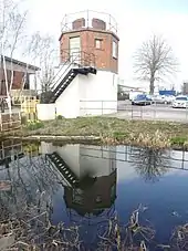 When the threat of war became clear in the late 1930s, the Cotswolds were seen as a suitable location for the dispersement of aerospace shadow factories, being a safe place away from German bombers range. Smiths were co-located to Bishops Cleeve and Stonehouse was chosen as a good place to build factories for the manufacturers Sperry's Gyroscope Company, who moved to Bond's Mill and Hoffmann's Bearings located to Oldends Lane. These two factories employed many people during the war and for a long time afterwards ensuring employment in the town for many years. The Gatehouse at Bonds Mill was originally constructed during World War II as a defensive pillbox. It is a rare example of a two-storey pillbox with a rooftop gun emplacement and is a Grade II listed building.[31] It is now used as a visitor centre run by the Cotswold Canals Trust.[32] Original air-raid shelters still exist nearby, being used as stores. There are the remains of a more conventional pillbox located on the railway at the canal crossing (2021) which may not survive the new bridge scheduled for Christmas 2021.
