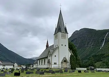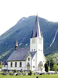 Stordal Church (Norwegian: Stordal kyrkje) is a parish church of the Church of Norway in Fjord Municipality in Møre og Romsdal county, Norway. It is located in the village of Stordal. It is the church for the Stordal parish which is part of the Nordre Sunnmøre prosti (deanery) in the Diocese of Møre. The white, wooden church was built in a long church style in 1907 using plans drawn up by the architect Jens Zetlitz Monrad Kielland. The church seats about 270 people. The church has a large steeple in the front.[1][2]