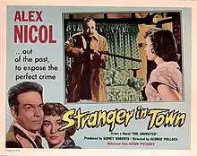 Stranger in Town is a 1957 British crime film directed by George Pollock and starring Alex Nicol and Anne Paige.[2] Arthur Lowe makes a brief appearance in a minor role.[3] It was made by Tempean Films at Alliance Film Studios.[2]