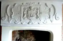 Strapwork became popular in England in the late 16th and 17th centuries as a form of plasterwork decorative moulding used particularly on ceilings, but also sculpted in stone for example around entrance doors, as at Misarden Park (1620), Gloucestershire, or on monumental sculpture, as on the frieze of the monument to Sir John Newton (d.1568), at East Harptree, Gloucestershire, and on that of Sir Gawen Carew (d.1575) in Exeter Cathedral. Wollaton Hall outside Nottingham makes especially extensive, and for some excessive, use of strapwork inside and out.