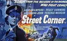 Street Corner is a 1953 British drama film. It was written by Muriel and Sydney Box and directed by Muriel. It was marketed as Both Sides of the Law in the United States. While it is not quite a documentary, the film depicts the daily routine of women in the police force from three different angles. It was conceived as a female version of the 1950 film The Blue Lamp.[2]
