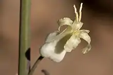 Streptanthus carinatus, the lyreleaf jewelflower,[2] is an annual to biennial plant in the mustard family (Brassicaceae) found in the Arizona Upland of the Sonoran Desert.[3]: 48 Subspecies S. carinatus arizonicus has white to cream colored flowers in its western range, becoming strongly yellow eastward.[3]: 48 Subspecies S. carinatus carinatus has purple flowers.[3]: 48