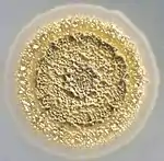 Mature Streptomyces sp myrophorea showing dusty green colonies with feint concentric rings