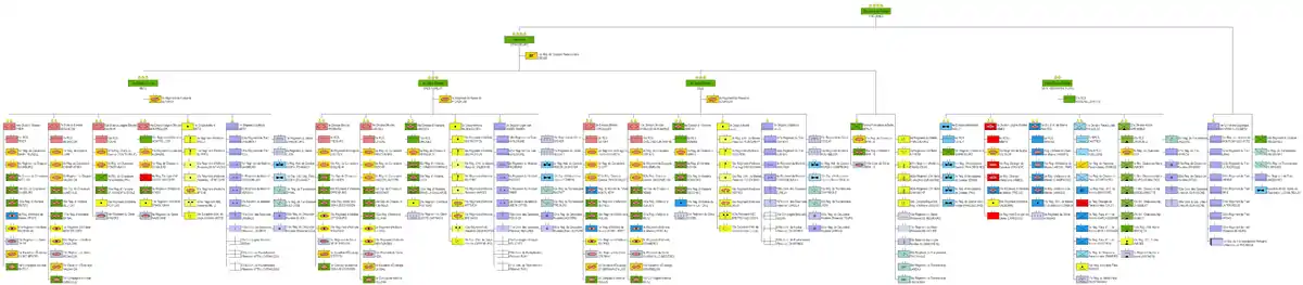 The following is a hierarchical outline for the French Land Army at the end of the Cold War. It is intended to convey the connections and relationships between units and formations. The theoretical combat strength of the army was 295,989 soldiers, of the 557,904 individuals available for service across the entire French Armed Forces in 1989.[1]