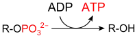 Substrate-level phosphorylation is a metabolism reaction that results in the production of ATP or GTP supported by the energy released from another high-energy bond that leads to phosphorylation of ADP or GDP to ATP or GTP (note that the reaction catalyzed by creatine kinase is not considered as "substrate-level phosphorylation"). This process uses some of the released chemical energy, the Gibbs free energy, to transfer a phosphoryl (PO3) group to ADP or GDP. Occurs in glycolysis and in the citric acid cycle.[1]
