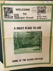 The Sugar Creek Slavic Festival is an annual two-day event held in Sugar Creek, Missouri. The next Festival is Friday & Saturday, 11–12 June in 2021, as 2020 went on hiatus.