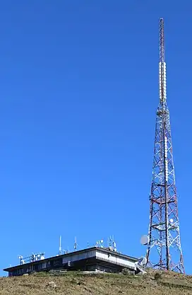 In 1962, the New Zealand Broadcasting Corporation leased a 4.9ha section of the reserve from the Crown on the summit of Sugarloaf Hill to install and operate a television communications tower and control building.[2] The tower and building were completed in 1965. Television channel CHTV3 (now part of TVNZ 1) started transmitting from the tower at 9:00 AM on 28 August 1965.[3] In 1975, new aerials were installed on the tower for TV2 (now TVNZ 2). However, an aerial fault caused loss of reception to northwestern Christchurch and the channel's launch in the city on 30 June 1975 was delayed to 6:00pm to give engineers extra time to repair the fault.[4][5] FM radio broadcasting from the tower began on 31 May 1986, with 3ZM broadcasting on 91.3 MHz.[6]
