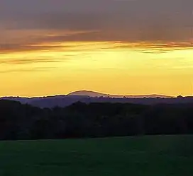 Sugarloaf Mountain is a small (1,283 feet; 391 m) mountain and park about 10 miles (16 km) south of Frederick, Maryland. The closest village is Barnesville, located just over one mile from the foot of the mountain. The peak of this relatively low mountain is approximately 800 feet (244 m) higher than the surrounding farmland. It is visible from many parts of northern Montgomery County and southern Frederick County, notably from I-270 north of the town of Germantown. Because of its geological and natural history interest, it was designated a National Natural Landmark in 1969. It is a notable example of an admission-free (although donations are requested), privately owned scenic park.