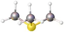 Sulfonium ions with three different substituents are chiral owing to their pyramidal structure. Unlike the isoelectronic oxonium ions (R3O+), chiral sulfonium ions are resolvable into optically stable enantiomers.[5] [Me(Et)SCH2CO2H]+ is the first chiral sulfonium cation to be resolved into enantiomers.[6] The barrier to inversion ranges from 100 to 130 kJ/mol.[3]