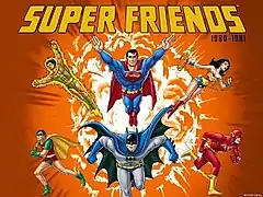 Super Friends is an American animated television series about a team of superheroes which ran from 1980 to 1983 on ABC.[1] It was produced by Hanna-Barbera Productions and is based on the Justice League and associated comic book characters published by DC Comics. It was the fifth incarnation of the Super Friends series following Super Friends (1973), The All-New Super Friends Hour (1977), Challenge of the Superfriends (1978) and The World's Greatest Super Friends (1979).[2]