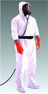 SARs may be either constant-flow or pressure-demand respirators. Constant-flow respirators supply a steady stream of air, some of which escapes from the wearer end unbreathed. Pressure-demand respirators supply air only when the pressure in the wearer's mask drops (that is, when they inhale). This saves air but allows more inwards leakage.[4][2][1] Pressure-demand respirators can only be used with a sealed elastomeric mask, not with a loose-fitting hood[4] (like those used in powered air-purifying respirators) or helmet (used in construction). Hoods may be made of Tyvek, polyethylene, or polypropylene.[6]