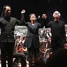 ![]() Suzanne Giraud (middle) alongside Kornilios Michailidis (left) and Pascal Quignard (right) during a concert on 19 October 2019. | |