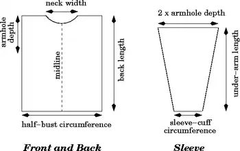 - armhole depth (vertical distance from bottom of armhole to lower hem)