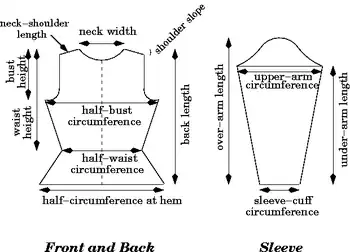 Ideally, these measurements will be taken directly from the intended wearer, since bodies are idiosyncratic and these measurements may vary independently of one another, e.g., the bust measurement does not determine the waist or hip measurements, just as the height does not determine the arm length or shoulder width. Alternatively, the body measurements may be estimated from clothing that fits the wearer well. As a last resort, standard measurements such as EN 13402 or US standard clothing sizes may be used.