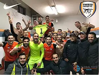 Swieqi United Football Club is a Maltese football and futsal club representing the municipality of Swieqi. The club was created by a group of University Students and Swieqi residents. Founded in 2009, the club enjoys a good fan-base especially amongst young people on the island. The team plays in Orange shirts (a fusion of the red and yellow of Swieqi) and use blue as the away kit. The club is renowned for giving young players the opportunity to play football and the club's symbol is the Owl – a reference to the students who founded Swieqi United F.C.