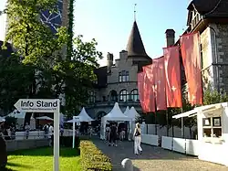 The boats of the Zürichsee-Schifffahrtsgesellschaft start their round trips (Swiss National Museum–Wollishofen–Zürichhorn) on the Limmat through the city of Zürich at the Swiss National Museum.