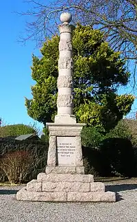 Hugh Glover held the lands of Townend circa 1701-4 and in 1733 William Kelso of Dankeith sold the lands to George Boyd of East Overloan Farm. William Hay Boyd, Esq. of Her Majesty's 20th Regiment of Infantry in the Crimea[26] and was the owner of Townend House (NS 37652 31552) and estate in 1839.[21] Townend is an 18th-century building with a Victorian Italianate wing. A dated lintel in the walled garden may have come from an earlier building on the site; the old stables, were converted into a small dwelling in the 1960s.[27] In recent times Townend Cottage has functioned as a nursing home,[13] Townend Cottage, circa 1810, situated in the village was its former dower house. The Hay-Boyds gave land for the village hall, a school, and a garden next to the church.[26]