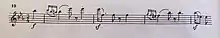 Rather unusually for Haydn,[10] he altered the fourth movement after it was completed, removing 13 bars fairly close to the end. The original autograph score preserves this music; it modulates to the key of C major and includes a two-measure rest; with the dynamic markings p and pp.[11] Robbins Landon suggests that Haydn removed the passage because it "would hold up the course of the movement."[12] The symphony is occasionally performed with the deleted passage included; e.g. in recorded versions by Antal Doráti and Frans Brüggen.