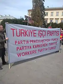 The Workers' Party of Turkey (Turkish: Türkiye İşçi Partisi, TİP) is a political party in Turkey. The party was founded out of a split in the Communist Party of Turkey (TKP). As a result of the internal strife between two rival factions, the group led by former chairman Erkan Baş initially established People's Communist Party of Turkey (HTKP) in 2014, and after three years, it was rebranded as the Workers' Party of Turkey in 2017 with the participation of intellectuals, young people, women, trade union leaders, and workers.[4]