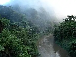 ![]() Mist hanging low over the Tāngarākau River | |