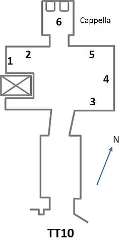 The Theban Tomb TT10 is located in Deir el-Medina, part of the Theban Necropolis, on the west bank of the Nile, opposite Luxor. It is the burial place of the ancient Egyptian artisan (his exact title was Servant in the Place of Truth) named Penbuy, who lived during the 19th Dynasty.[2] Penbuy shared his tomb with Kasa, also a Servant in the Place of Truth.[1]