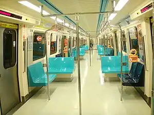- The end cars now feature completely longitudinal seating instead of transverse seating traditionally used on Taipei MRT trains.