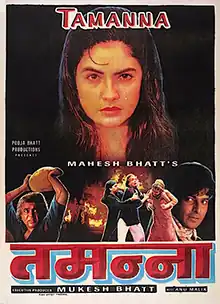 Tamanna (transl.Desire) is a 1997 Indian Hindi-language drama film directed by Mahesh Bhatt. It stars Paresh Rawal, Pooja Bhatt, Sharad Kapoor and Manoj Bajpayee. The screenplay was written by Tanuja Chandra. The story was written by Tanuja Chandra and Mahesh Bhatt. It was produced by Pooja Bhatt.