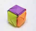 The Tamatebako (玉手箱) is an origami model named after the tamatebako of Japanese folk tale. It is a modular cube design that can be opened from any side. If more than one face of the model is opened, the cube falls apart and cannot easily be reconstructed. The model, and the directions for creating it, had been lost for centuries and only recently rediscovered.
