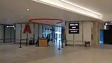 Airside F was added to the airport in 1987 along with an additional shuttle line. Airside F's shuttles included new second-generation C-100 vehicles, and it would be the first airside system to include two-car trains.[10] Airside F's shuttle station was built on the second level of the airside building (the same level as the passenger boarding jetways) unlike the original airsides, which had their shuttle stations on the third level (the same as the landside terminal). This was due to the improved technology of the second-generation C-100 vehicles, which could better handle inclines than the original vehicles and it eliminated the need for passengers to descend a level to access aircraft.[9] Every subsequent airside would have its shuttle station on the second level.
