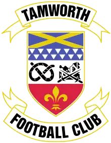 The Tamworth FC badge features the flag and the Stafford knot, the symbol of Staffordshire next to the Tamworth castle.