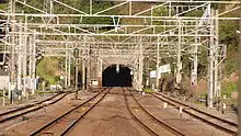 Tanna Tunnel (丹那トンネル, Tanna-tonneru) is a railroad tunnel in Shizuoka Prefecture, Japan operated by JR Central’s Tōkaidō Main Line. This 7.8 km long tunnel shortened the trunk route between Tokyo and Kobe by omitting a detour round the mountains between Atami and Numazu.[1]