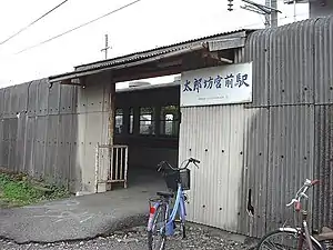Tarōbōgūmae Station (太郎坊宮前駅, Tarōbōgūmae-eki) is a passenger railway station in located in the city of Higashiōmi, Shiga Prefecture, Japan, operated by the private railway operator Ohmi Railway. Although Ohmi Railway uses the name Tarōbōgū-mae with long sound for the first "o" on its web page,[1]
