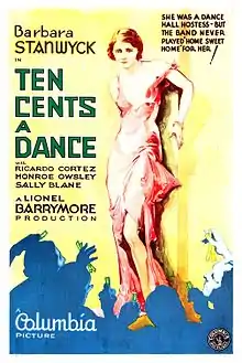 Poster for the film Ten Cents a Dance (1931) with Barbara Stanwyck as a taxi dancer