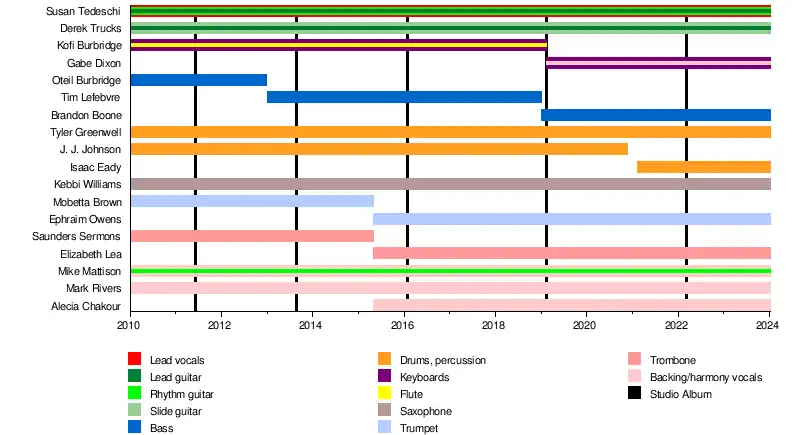 • Susan Tedeschi – lead vocals, rhythm and lead guitar (2010–present)