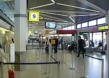 Initially, all commercial flights used the original terminal building (a pre-fabricated shed), which was situated to the North of the runway, at what is today the military part of the airport.[19]