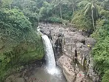 Tegenungan Waterfall is a waterfall in Bali, Indonesia. It is located at the village of Tegenungan Kemenuh, also known as Kemenuh Village on the Petanu River in the Gianyar Regency, north from the capital Denpasar and close to the Balinese artist village of Ubud. The waterfall is isolated but has become a popular tourist attraction. It is one of the few waterfalls in Bali that is not situated in highlands or mountainous territory. The amount and clarity of the water at the site depend on rainfall but it contains green surroundings with fresh water that can be swum in. The waterfall includes varying highs that can be climbed after the descent down stairs to reach it. This attraction also features a viewing point to the jungle and waterfall at the main entrance.[1][2][3]