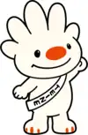 Teine's mascot is Teinu-kun (ていぬ君) who is a mixed dog/polar bear/rabbit kamuy. As a result, it had five ears that resembled fingers. It resides in a special room in the ward office. It is accidentally discovered at Mt. Teine on November 6, 1989 when it smelled alcohol. It likes pumpkins, watermelons and cream bread (which give its nose its colour). It struggles to control with its body temperature. It is still learning the human language.[6]