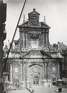 The Temple of the Augustinians (French: Temple des Augustins, Dutch: Augustijnentempel), alternatively the Church of the Augustinians (French: Église des Augustins, Dutch: Augustijnenkerk) in Brussels, Belgium, was a Brabantine Baroque-style church designed and built from 1621 to 1642 by the architect Jacob Franquart for the Augustinians order. It was located on the Place de Brouckère/De Brouckèreplein in central Brussels until its demolition in 1893–94. Its facade's masonry, however, was preserved, being disassembled and reconstructed as the facade of the Church of the Holy Trinity in Ixelles.[1][2]