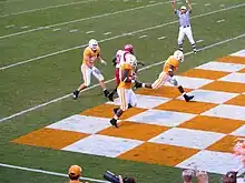 The Tennessee Volunteers football program (variously called "Tennessee," "Volunteers," "Vols," "UT," and "Big Orange") represents the University of Tennessee (UT).