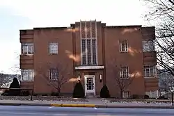 Tergin Apartment Building, also known as Tergin Apartments , is a historic apartment building located at Jefferson City, Cole County, Missouri. It was built in 1938–1939, and is a two-story brick walkup apartment building with a full basement. It measures 50 feet wide by 35 feet deep and features Art Deco and Streamline Moderne design elements.[2]:5